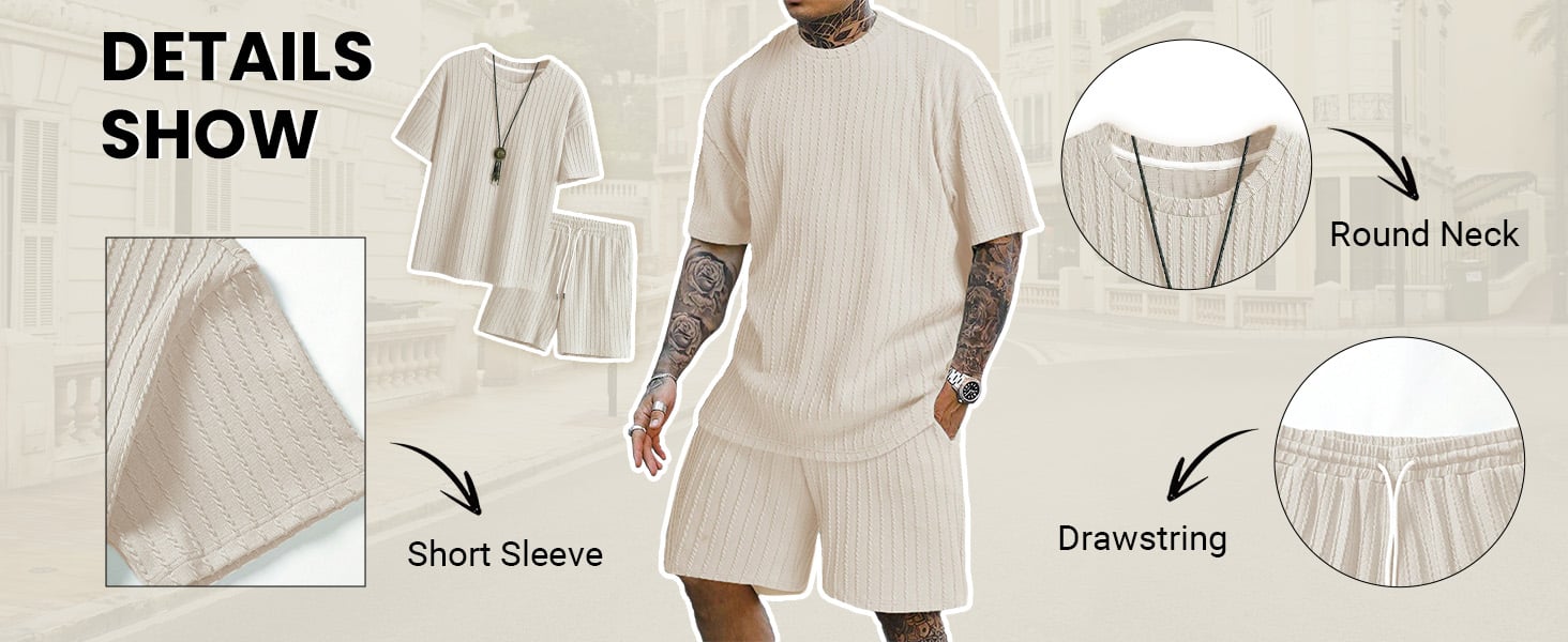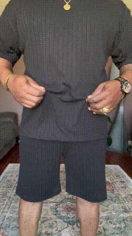 Men's Casual Textured Printed Short Sleeve Tee & Drawstring Waist Shorts Set
